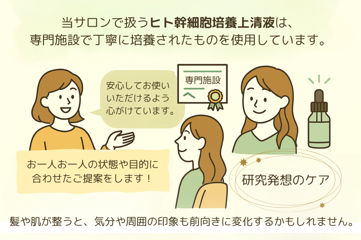 美容室という身近な場所で「研究発想のケア」を気軽に取り入れていただけるのが当サロンの強みです。