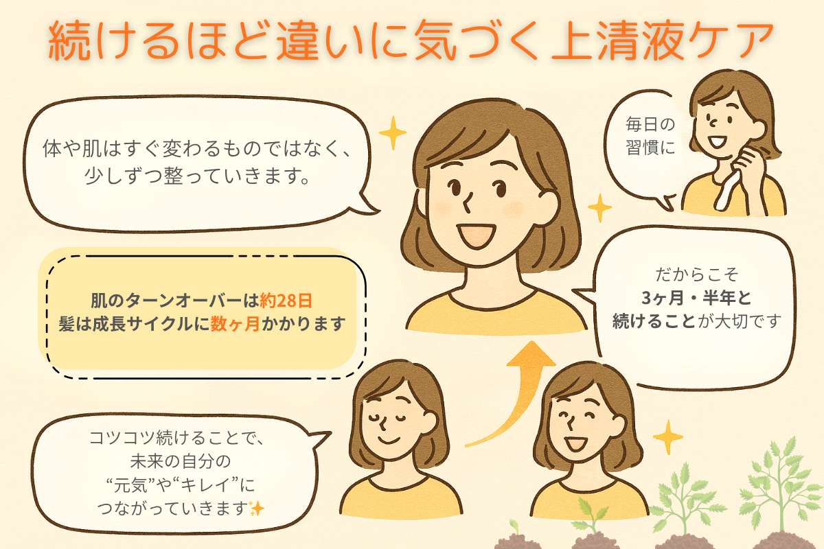 上清液を使ったケアは、そうした変化に寄り添い、内側(角質層や頭皮環境)からコンディションを整えるサポートとして注目されています。