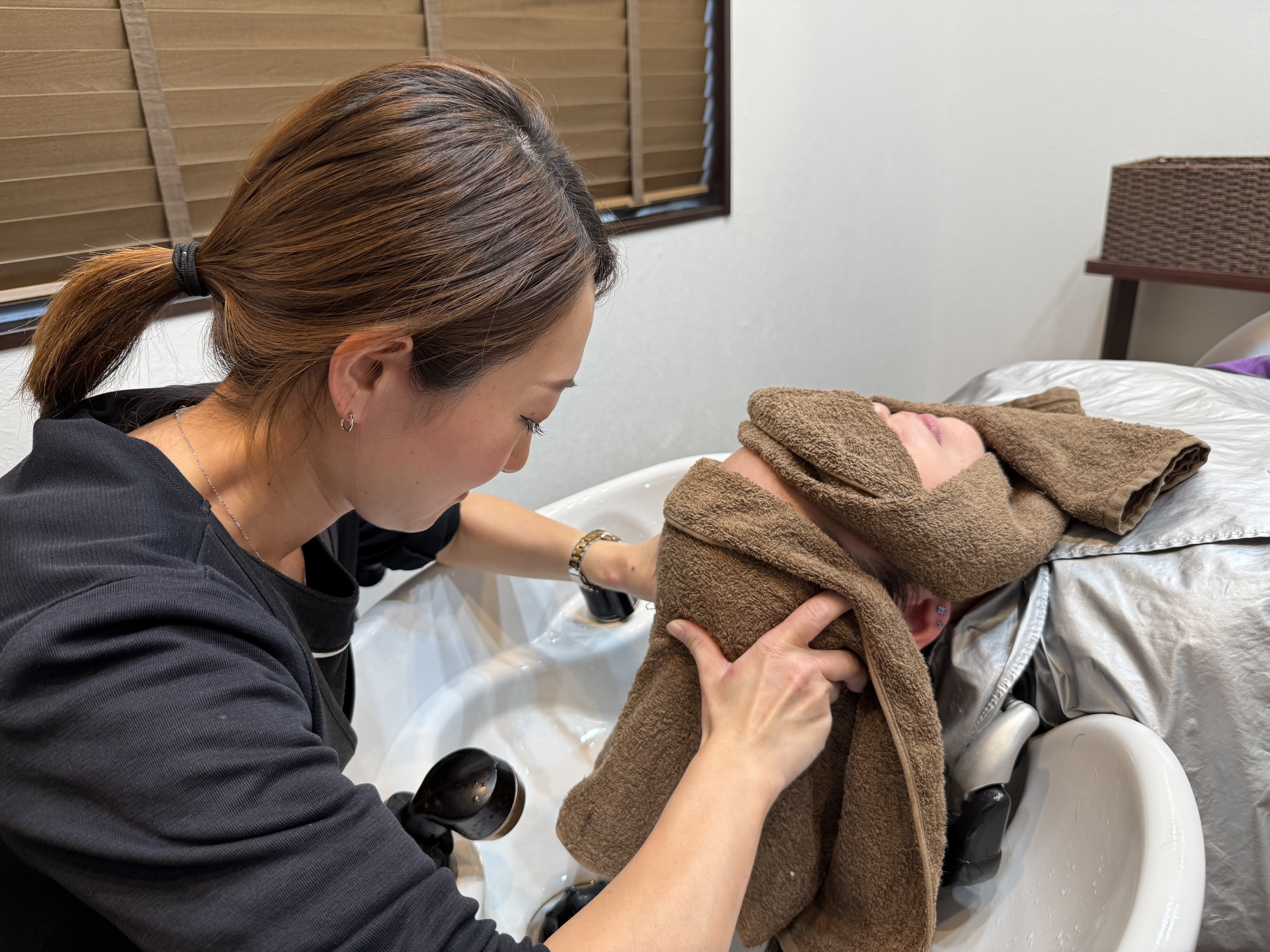 当サロンでは、マイクロスコープで頭皮状態を細かくチェックし、オイルクレンジングで毛穴の奥の汚れまでしっかり除去。