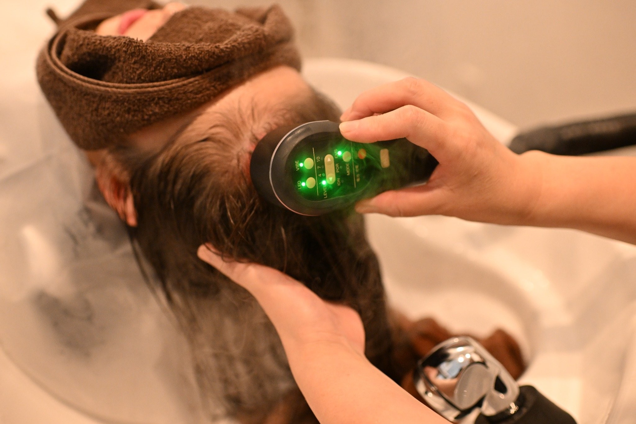 当サロンの「温感スパケア」は、温かいジェルとマッサージで頭皮をじんわり温めながら血行を促進するメニューです。