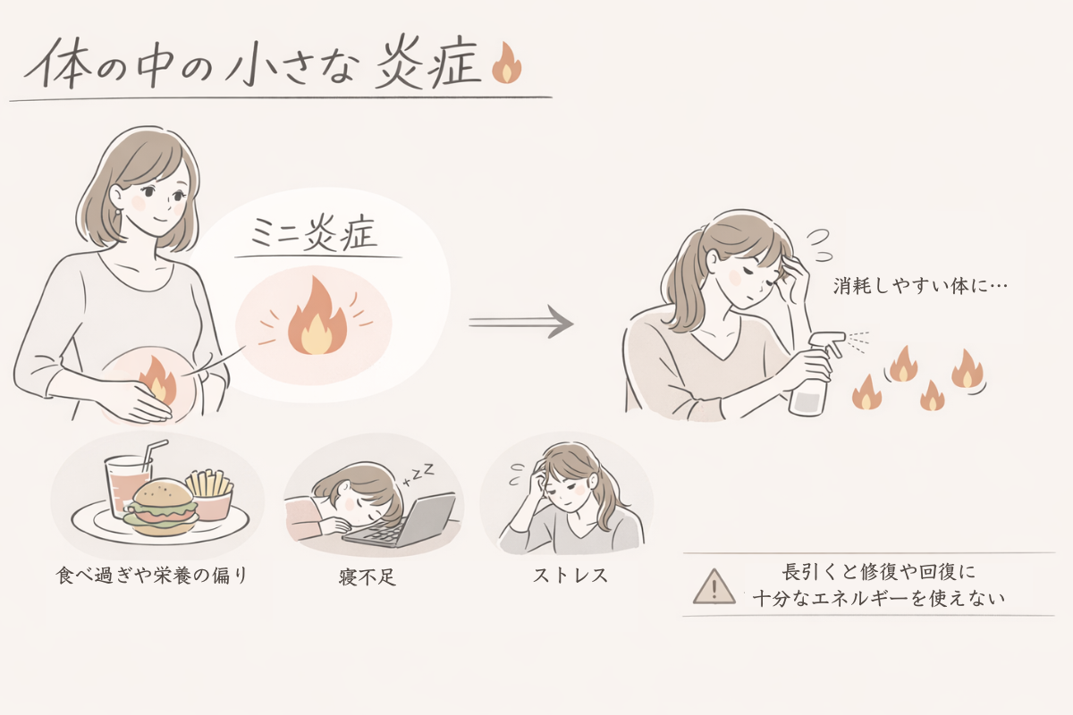 実はその背景には、体の中で起きている“体内炎症”が関係していることがあります。