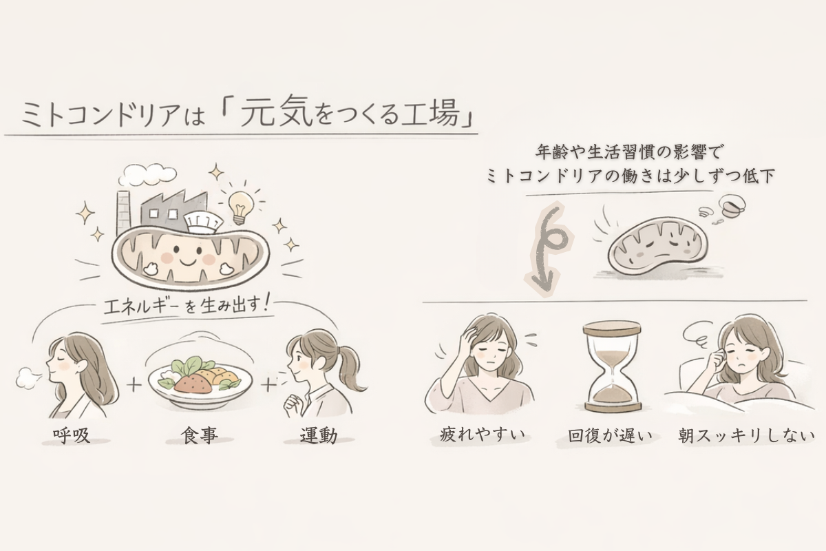 そう感じた方もいらっしゃるかもしれませんが、実はミトコンドリアは、私たちの体調や回復力ととても身近な関係があります。