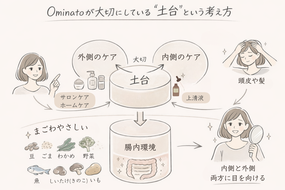 Ominatoでは、この“土台”を体の中の状態、とくに腸内環境だと考えています。
