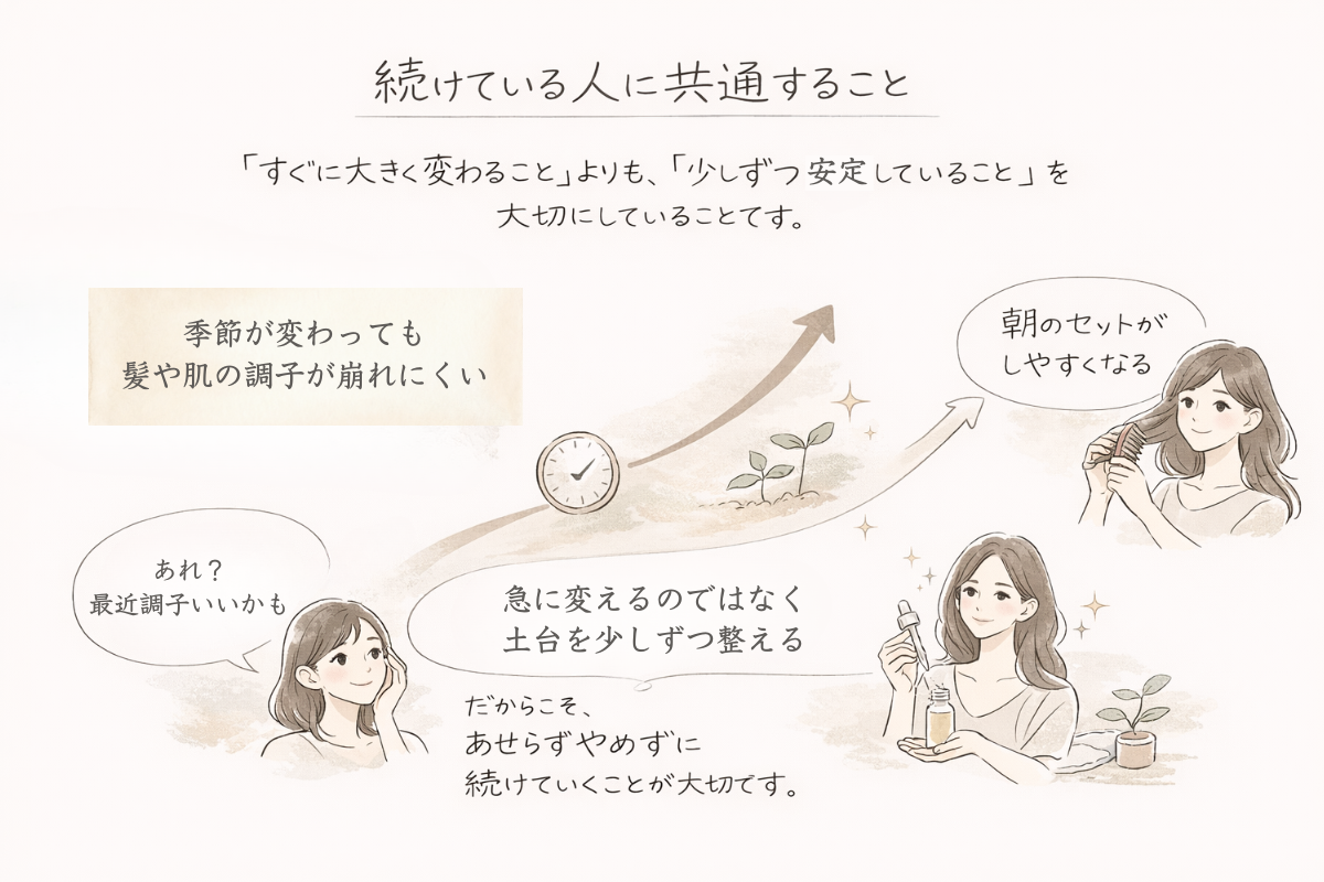ヒト幹細胞培養上清液を、サロンでもご自宅でも無理なく続けている方には、ある共通点があります。