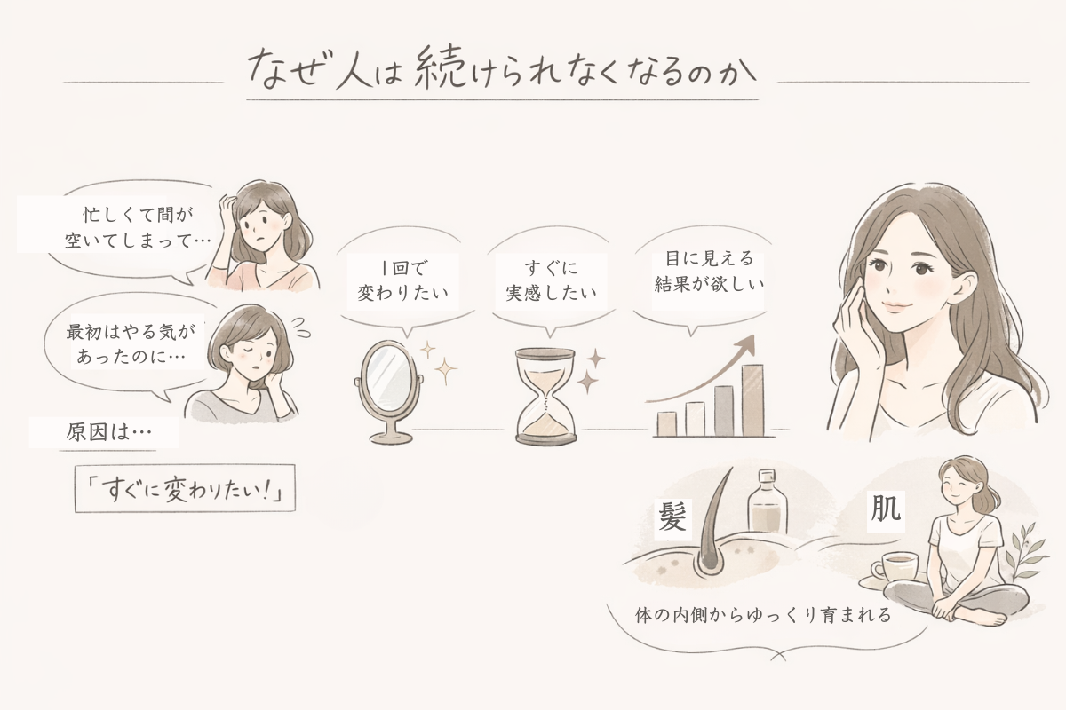 実は、美容ケアが「合う・合わない」以前に、多くの方がつまずいてしまうポイントがあります。